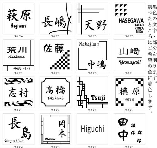 モノトーンタイルを使ったデザインタイル表札 サイズ :94mm×94mm×10mm 材質 :磁器タイル 加工方法 :彫刻(サンドブラストエッチング) 文字等着色:黒、茶、ゴールド、シルバー ベースデザインをお選びいただき、その後メールで微修正のやり取りをさせて頂きます 発送はポスト投函型のメール便となります。